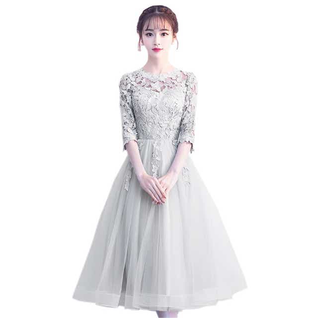ワンピース 通販 ドレス レース 結婚式 二次会 パーティ 袖あり 5分袖 五分袖 ミモレ丈 ミディアム 上品 謝恩会 同窓会 発表会 フォーマル お呼ばれ 代 30代 40代 50代 Xlサイズ グレー Backyard Family Jre Pointが 貯まる 使える Jre Mall